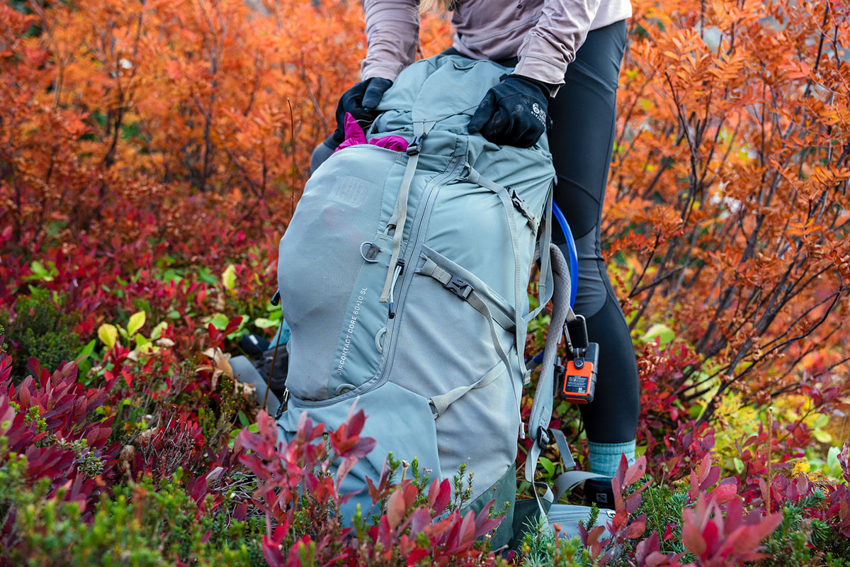 在收納設計方面,我們認為它的設計很合理。外部有兩個標準的插手口袋,位置足夠低,背包的腰帶或攀巖安全帶可以覆蓋住,但對于日常使用來說,這個高度也很合適。內部還有一個非常大且適合放手機的胸袋,配有一個雙面拉鏈,用于收納夾克。有些人可能希望有更多的收納選擇 —— 我們個人希望在內部有一兩個插袋,用來存放像手套這樣的小物件 —— 但對于大多數人來說,這種簡單的布局已經足夠了。