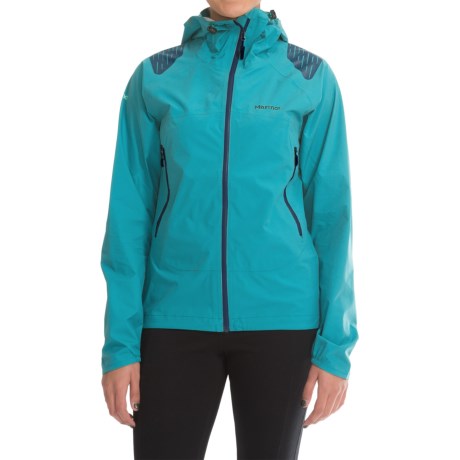 Marmot Crux Jacket土撥鼠 女士防水沖鋒衣,采用了土撥鼠最新NanoPro Membrain科技面料 ,密封接縫,具有和GORE-TEX面料類似的防水性,甚至透氣性更強。超輕2D防撕裂尼龍面料,自重僅232g,肩部Duralite特殊防水涂層面料,增加耐磨防撕裂性。防風帽與下擺抽繩可調,袖口帶彈性,保證了較好的防風性。