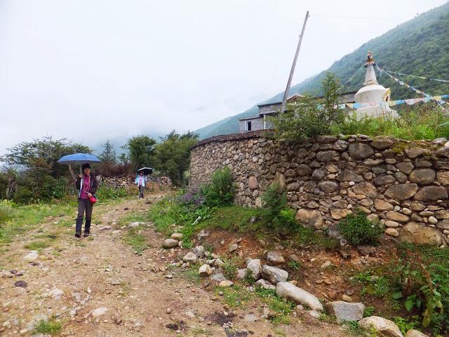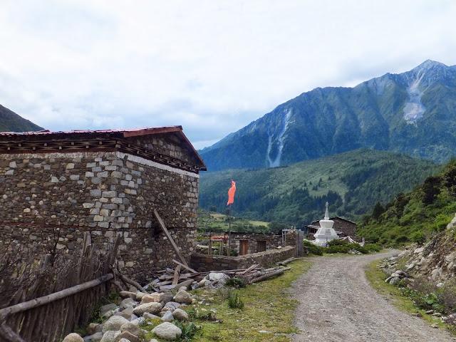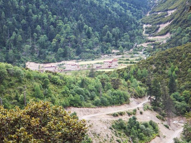 今天兵分兩路,有人到貢嘎寺,有人到巴望海;由于昨天走到腳底板已不舒服,到貢嘎寺還得上上下下,況且藏式寺廟我已看過很多,就選擇較輕松行的巴望海。9:30司機開著車載著我們6人出發(fā),經(jīng)下子梅村,在此小停,看到有間小學,還有簡易的秋千;之后一路為平緩的下坡路,10:30到達崩塌處,由此需雙腳徒步前往,11:10終抵巴望海。