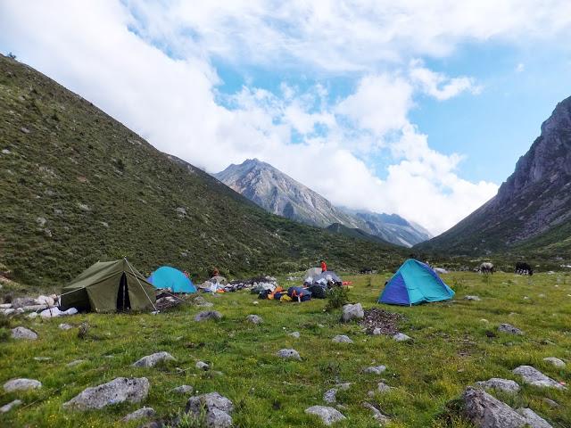 9:00離開營地,10:30抵下日烏且營地,休息、補充食物。這兒有藏族的帳篷,大家用扎西德勒互相問候著;13:00抵上日烏且營地,今天早早扎營,算是輕松的一日,然而卻是在4200M 高的地方扎營,此生第1次在超過4000M 處扎營!