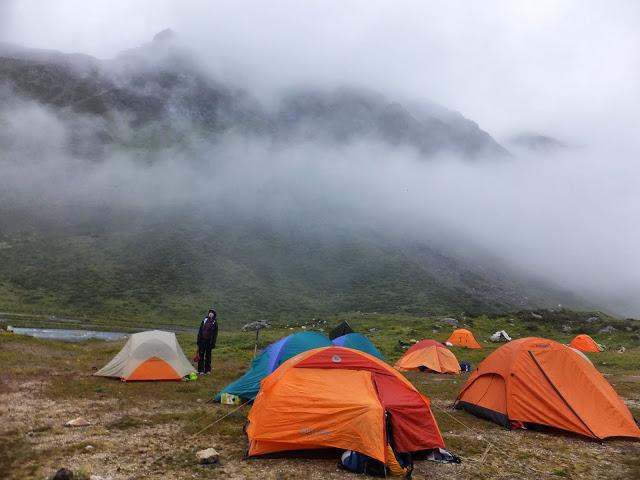 巴望海靜靜地斜躺在群山環(huán)抱的青翠峽谷中,原始、蒼涼。在一汪碧綠如茵、似夢似幻中,構(gòu)成一幅絕美的山水畫。大伙在此午餐后,依依不舍往回程,12:55坐上王堆師父的車,13:25回抵上子梅村,之后整理裝備,15:45坐車往子梅埡口,16:30抵達,子梅埡口海拔4500M ,今晚在此扎營,這可是到目前為止,今生到過海拔最高的地方扎營了。