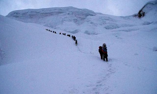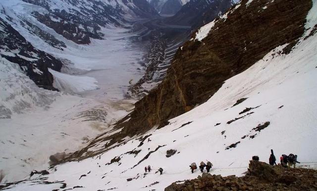4、翻越埡口:途中翻越的Gondogorola埡口,是一個技術性的埡口,海拔約5700米,被冰川和積雪所覆蓋,具有較大的難度,架有路繩,需要使用部分攀登器材,其攀登體驗堪比一座6千米級別的雪山,對于徒步愛好者而言也是非常難得的體驗。