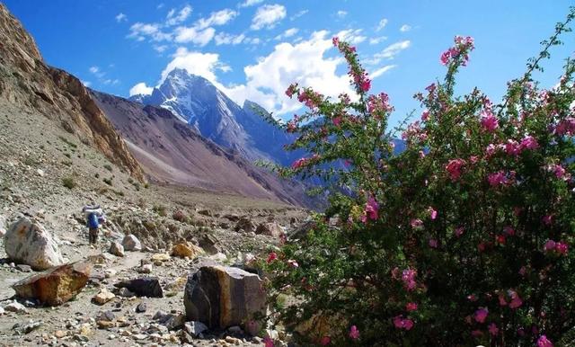 今天的行程是徒步的第一天,沿著河谷往東,路況較好,注意防曬,路上及時補充飲用水,途中可遠眺海拔6610米的險峻的Paiju峰。