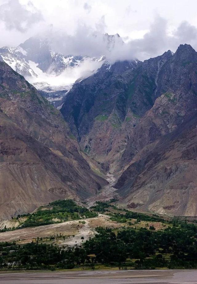 喀喇昆侖公路邊的小鎮,距離passu不遠的公路邊,有一條巨大的Batura冰川,其南側多座7千多米的雪山排列成行,冰川全長56公里,也有一條徒步線路供徒步愛好者選擇。