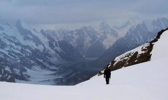 北側的山谷里,出現一座高聳的險峰,是海拔7284米的muztagh tower慕士塔格塔峰,名稱和新疆的慕士塔格發音相同,山體則要陡峭很多,確實像一座塔。