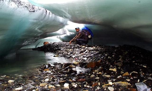 冰川表層融化,形成了一個冰洞。我們鉆進去,真是清涼世界。