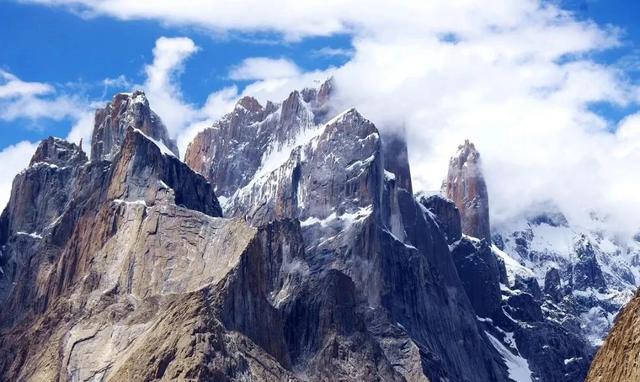 3、川口峰群:途中可以近距離觀賞到的川口峰群,盡管海拔不是特別高,只有6千多米,但卻擁有極具挑戰性的大巖壁,這里有2千多米的超長巖壁攀登線路,有世界上最高的1600米落差的垂直巖壁,是全世界大巖壁攀登者向往的香格里拉,值得特別留意觀賞。