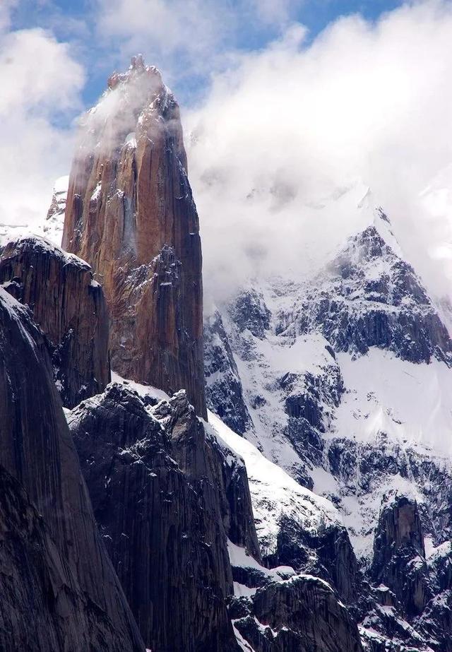 位于Baltoro冰川北側,山體垂直聳立,直插云霄,擁有極具挑戰性的大巖壁