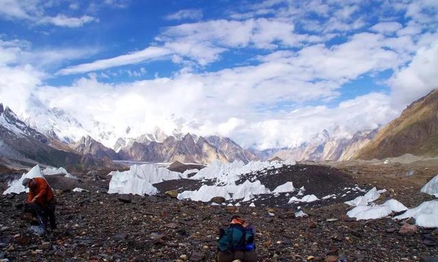 而整座營地所能看到的最吸引人的景色,無疑就是北邊的K2和布洛阿特峰。就在G4峰的北側,布洛阿特峰的巨大山體高高聳立;更遠處,矗立著K2。