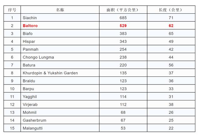 下表是巴基斯坦最大的冰川排名(按面積排列),其中最大的Siachin錫亞琴冰川,位于中國、巴基斯坦、印度三國交界處,主要為印度所控制,不對游客開放。排名第二的Baltoro冰川,是K2BC徒步路線上的必經路段(著名的戶外背包品牌Gregory的一款經典背包就是以此冰川命名)。排名第三的Biafo和第四的Hispar冰川,則連起來組成了Snowlake徒步路線。