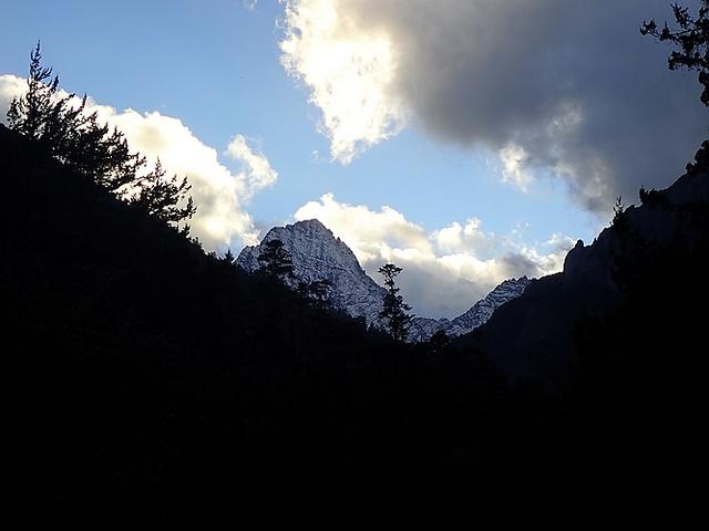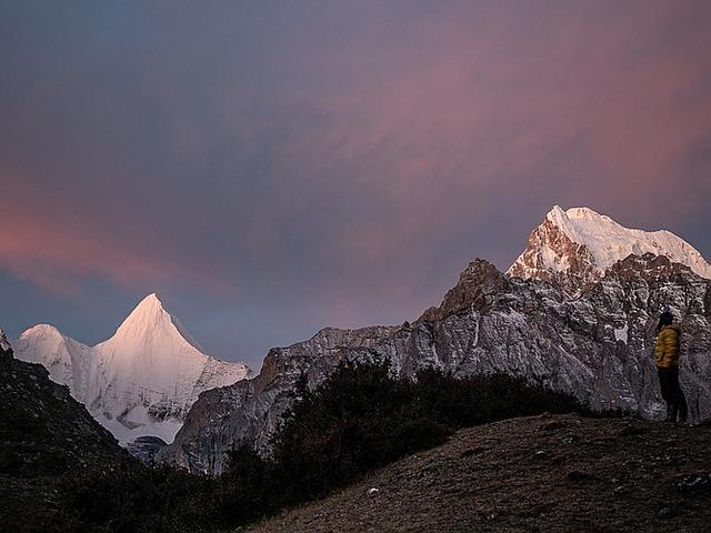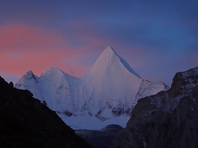 日落之后,傍晚時分,云散了,圣山出現,左邊是央邁勇,右邊是仙乃日。