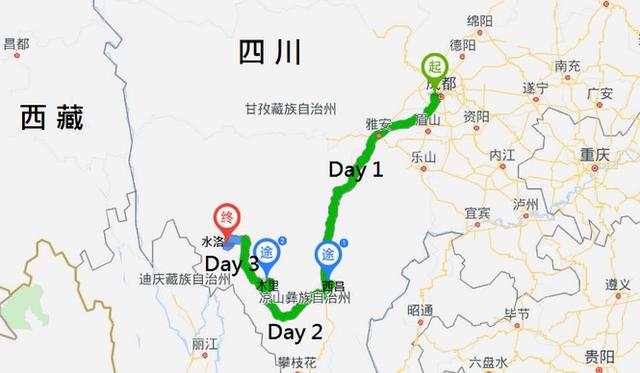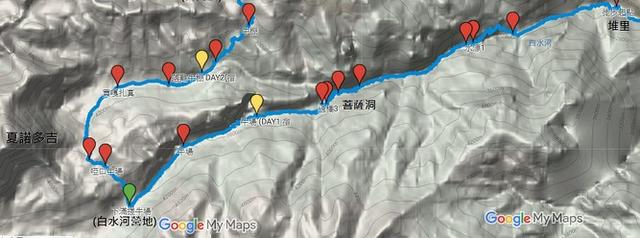 嘟嚕村(2350米)水洛金礦(2400米)堆里(徒步起點)菩薩洞(3100米)無名牛棚營地(3700米)