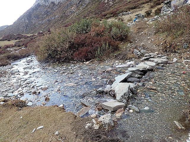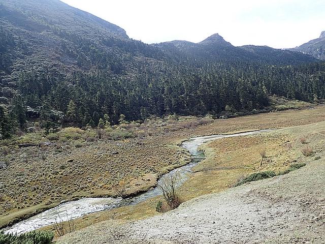 下午三點來到河谷,以為扎營處在不遠處,沒想到在接下來的三個小時,我們找不到載著我們行李的馬幫
