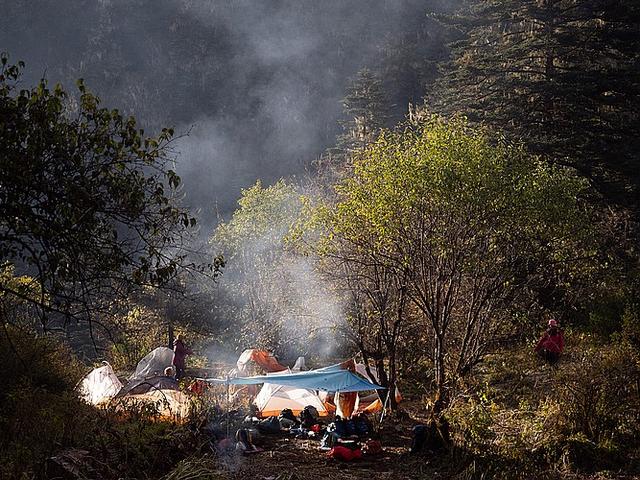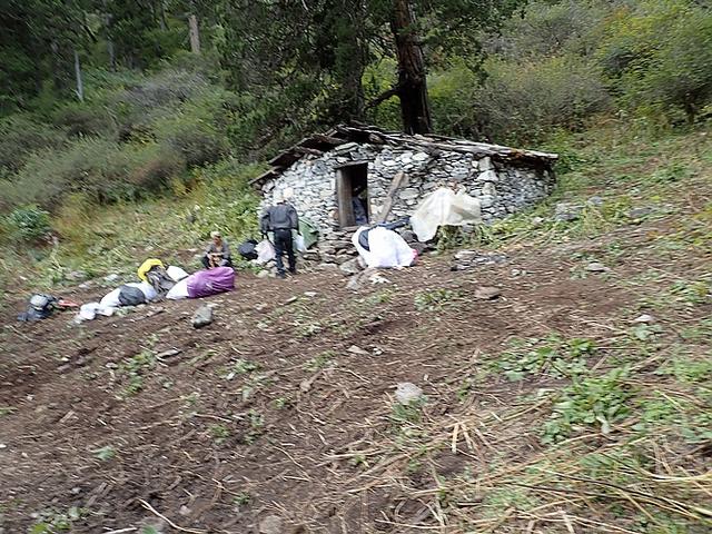 我們在小屋附近搭了帳篷,我的帳篷離小屋最近,小屋則是馬幫的睡覺之處,他們在里面煮飯,整晚生火,才不會太冷。