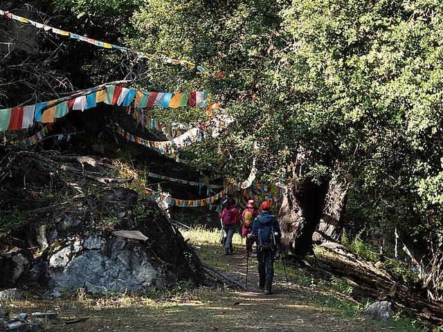 抵達馬路之前,我們的行李被馬幫放在樹林中,向導幫我們看著行李。我們背起行囊還要走很大一段路才能抵達亞丁的巴士站。
