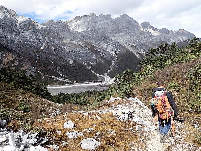 第二天一早,我們在山徑上緩上,昨日見到的雪山慢慢變成大山