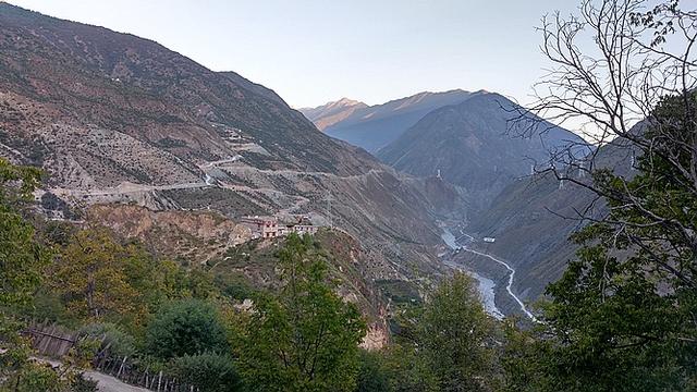 搭上8:00的車子前往藏族自治州的水洛鄉,離開車站之前,交通警察還上來發單子要我們注意旅游安全。這一路往水洛鄉的路況就沒有前面兩天舒適,離開木里之后,偶有柏油路,偶爾石子路,越接近水洛路況越糟。中間在一淹塞湖旁的餐廳停了一小時讓我們午餐,然后繼續上路爬上啞口(又小停讓我們拍照休息)之后,慢慢往下坡在下午4點50分抵達水洛鄉一村。民宿的接駁車來接我們到二村都魯村。