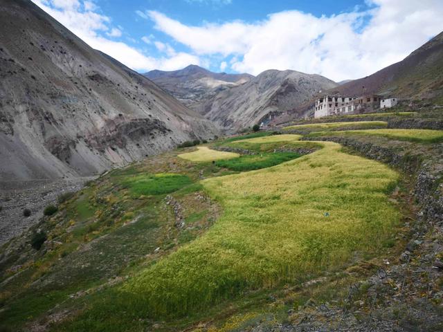 從西藏再往西,便是拉達(dá)克。喜馬拉雅和喀喇昆侖兩大世界最高的山系從南北兩面將其夾峙其間,幾乎平行的拉達(dá)克山脈和札斯卡山脈又從中橫貫,無數(shù)雪山托起這片平均海拔3500米的高地。重重雪山接天連地,像守護(hù)一個(gè)久遠(yuǎn)的神諭一般,守護(hù)著拉達(dá)克的古老文化,守護(hù)著這傳說中的“小西藏”。