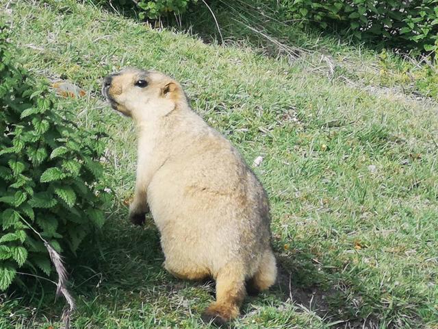 忽然間我們發(fā)現(xiàn)草叢間有動物的聲音,結(jié)果是只肥土撥鼠,不怕人的!