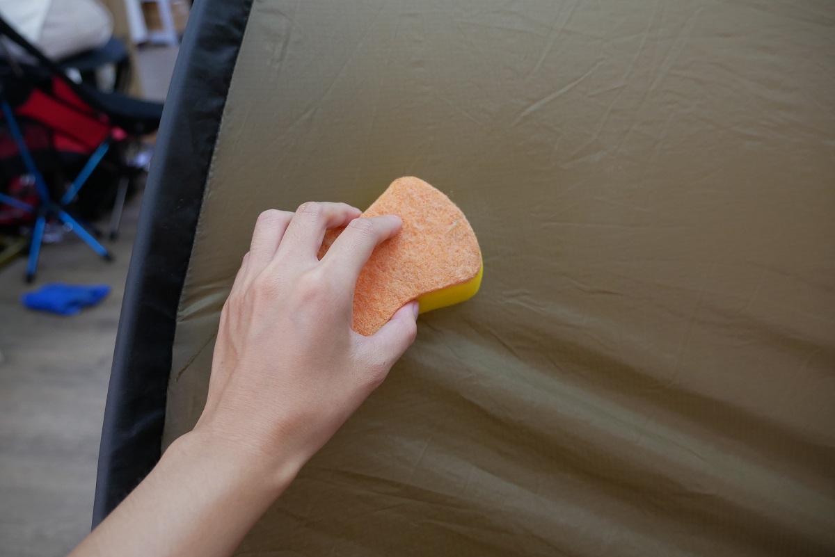 其實(shí)不太需要常常清洗帳篷,除非臟到無法忍受的地步。如果要清洗帳篷,可先將帳篷搭起來,使用海綿沾“冷水稀釋的中性清潔劑”來擦拭表面。如果是到海邊露營(yíng),或是帳桿有暴露在有鹽水的空氣中,收納前要先用干淨(jìng)的水清洗過蔭干,以免腐蝕帳桿。