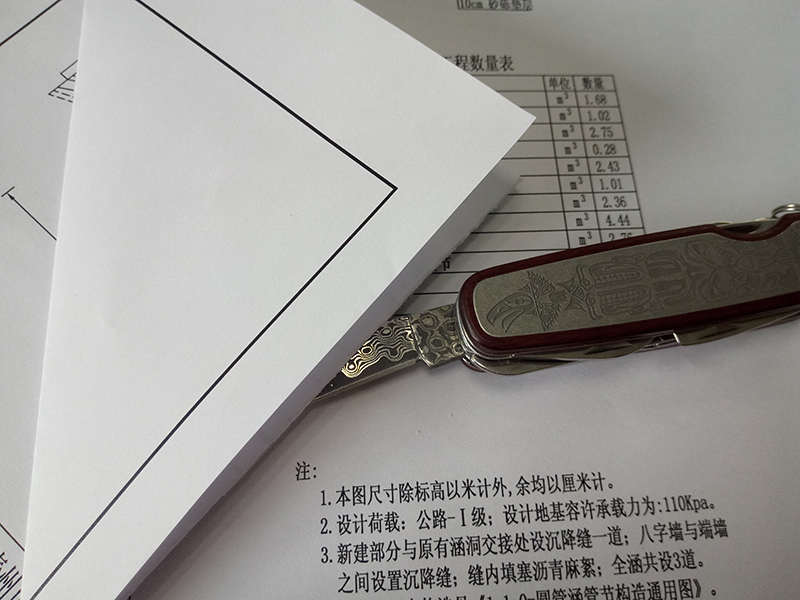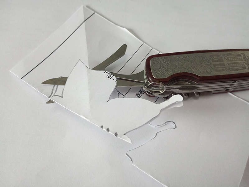 我用這款多功能刀嘗試了一下剪紙,先用刀把紙裁成方形。