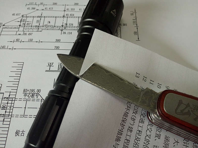 看一把刀是否鋒利,看它能不能削紙就能看出一些端倪,這把漢道工具刀能夠削紙,但沒有以前入手的虎鯊削紙順暢。