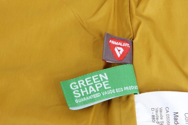 著重綠色產業的VAUDE,在這件外套內的綠色標章與環保標章。