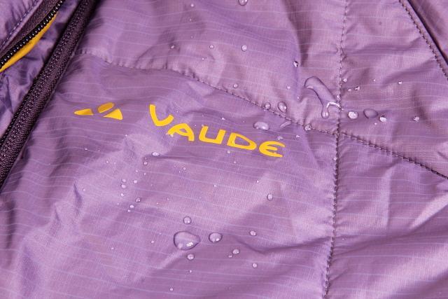 身處潮濕多雨的地區,PrimaLoft是對抗東北季風的絕佳利器,它的防水效果徹底打趴羽絨衣,超細纖維材質本身不吸水,特殊織法在織物表層形成表面張力,讓水滴無法滲進纖維中。這次作了一個實驗,穿上VAUDE Cornier之后,將手肘處移到水龍頭下,沖水一分鐘,之后又浸泡水盆里一分鐘,水已經從車縫線里滲進去,但里頭完全沒濕,再者,PrimaLoft就算濕掉也還是保暖。