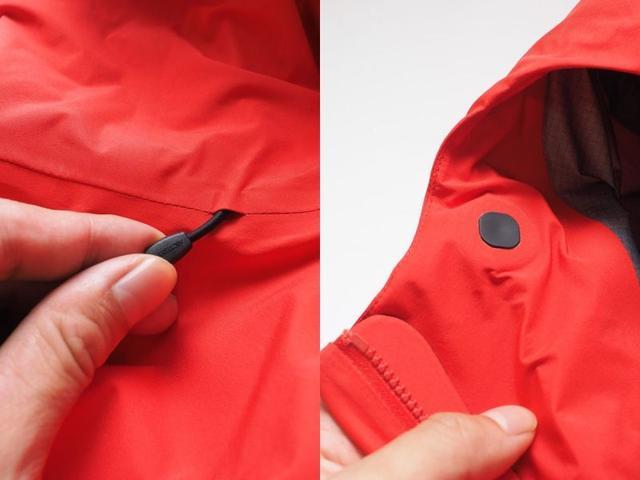 一頂好的兜帽,自然要方便調整,尤其是戶外性質的活動常常需要在行進間適應環境,速度兩個字是非常重要的。始祖鳥最厲害的是將這些設計與外套無縫接軌,使用COHAESIVE快調系統,將圓形調節器隱藏在兜帽中,僅僅在下方開一個小小的孔將繩具露出,讓外觀保持極簡風格。只要輕輕壓住圓形調節器,輕鬆就可調整帽子束帶,即使戴著厚手套調整也很方便。