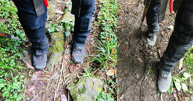 植物園是規(guī)畫良好的人工步道,由水泥舖面和木棧道組成。若是穿著平時重裝登山用的重靴,走在這種路面上其實是不舒服的;但由于此鞋是布鞋面及軟中底(EVA),所以踩在路面上,就跟穿著運動鞋一樣舒適,沒有平常登山鞋的緊繃感。接著就讓我?guī)е蠹易咄旮I街参飯@的大小步道吧!