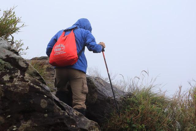 在惡劣的天后下,成功背著沖頂包快速往返山頭。