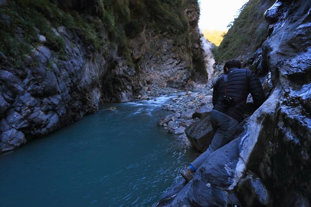 要是從山壁上滑落水潭,攝影器材就完蛋了!