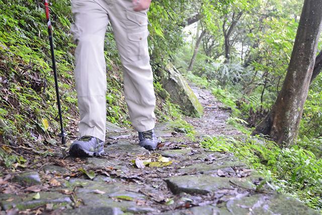 穿著La Sportiva CORE HIGH徒步登山鞋漫步在雨后的步道上,仍有著相當(dāng)稱(chēng)職的抓地性。