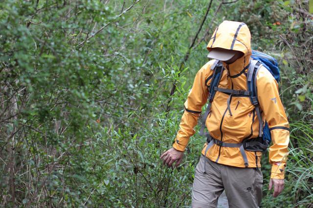 多次測試的環境中雖沒傾盆大雨,但也都是一整天幾乎都下雨的狀態,因此防水外套毫不離身;另一方面,野外活動中樹枝、竹枝對表布的傷害往往不小,但OutDry Extreme零滲透抗水科技布料的強度不錯,不僅不容易勾住這些雜物,其強度應該也能大幅減少穿刺破裂的問題。