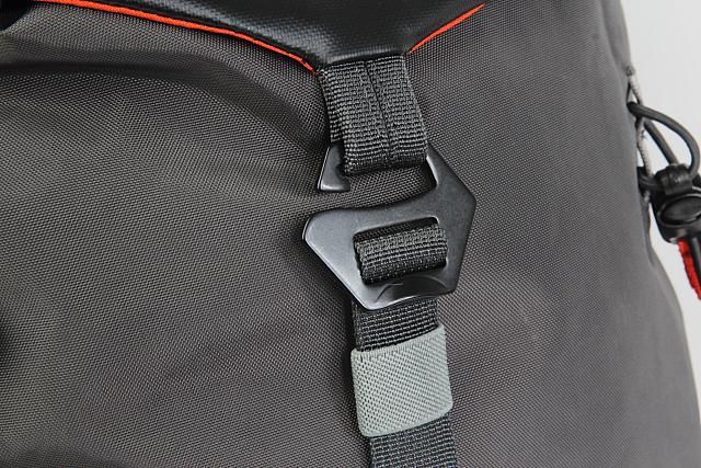 另一方面,為了避免因淋雨后布料吸附水分,所以整個背包都采用OutDry防水布料,并在背包的內側接縫都貼上防水貼條,制作方式就彷彿像是雨衣一般。不過兩側的開放式小袋,以及一些可以外掛裝備的彈性繩、掛環等,它還是一應俱全。