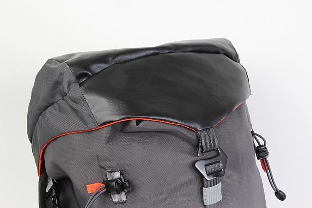 基本上Scrambler 30雖然被稱為「防水」(waterproof),但它其實并不是如防水袋一般,可以直接丟入水中,而是必須以背負方式,在行進間防止雨水滲入背包中。這是因為它的主袋開口僅是以拉繩束緊或打開,而非使用防水拉鏈或打摺快扣的方式,所以必須以頂袋當作蓋子,以避免雨水流入袋中。另一方面,它的頂袋拉鏈也沒有使用防水拉鏈,而是利用遮雨片擋住雨水。
