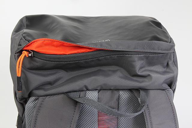 頂袋本身的拉鏈則有相當寬的遮雨片保護,也可以避免雨水滲入。