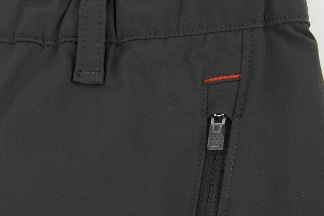 由于口袋比較少,且兩側的口袋為了剪裁的合身性而犧牲容量(即比較淺),所以在為了避免東西掉出來的情況下,都加有拉鏈,而拉鏈的五金相當細致,并搭配半透明的樹脂拉扣,可說Mountain Hard Wear實在是連小細節都很在意!至于表布本身,稍具有防潑水性,這增加了基礎的抗臟能力。