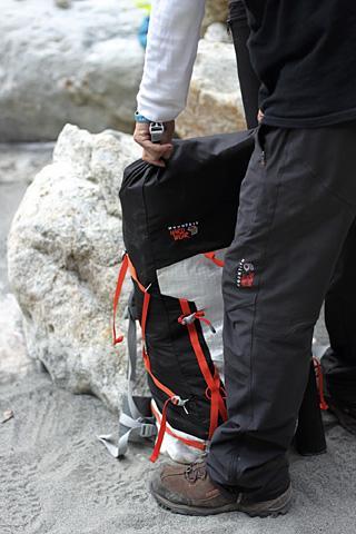 收到這條Mountain Hard Wear秋冬的新款登山長褲Warlow,第一眼的印象就是簡單利落!雖然個人不是很喜歡深灰、黑色系等無彩色的人,但這條登山長褲因為沒有外口袋(注),加上沒有臀部的后口袋,而兩側口袋也以拉鏈隱藏在側邊車線,所以外形相當簡單利落,加上一點點的小喇叭剪裁,讓它看起來帶有點時裝的感覺。