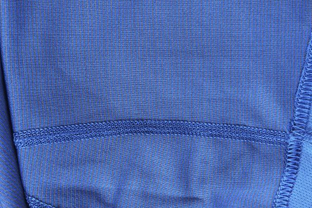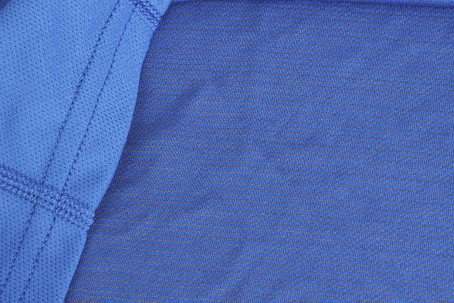 實際拿到這款底層衣時,以手觸摸布料,不論表裡層的膚觸感都相當絨軟,尤其是接觸身體的那面,觸感更是像絨布般。就排汗衣而言,有些品牌為了強調快干,而以非常強化的異型斷面纖維為織布原料,雖然排汗與快干性非常好,卻會忽略了穿著舒適感,甚至粗糙感讓人很明顯知道是化纖服飾。