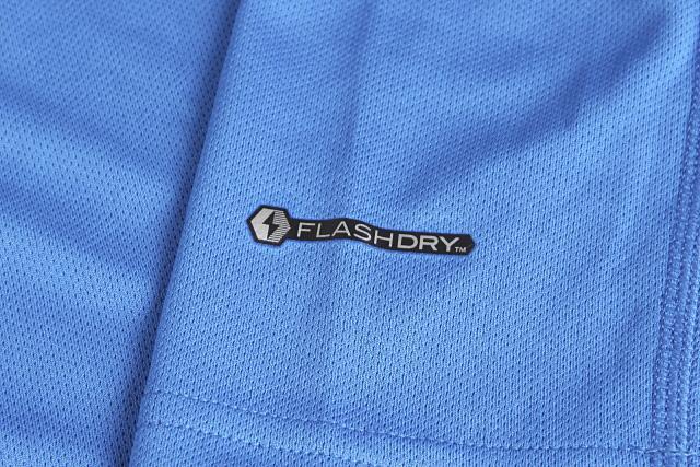接下來,因為布料纖維立體化,加上體表的濕氣與溫度會較空氣為高,在纖維上的汗水將會被毛細線向快速帶至衣物外側表面,進行蒸發作用。簡單地說,Flash Dry纖維技術就是一臺體表汗水的抽水機!