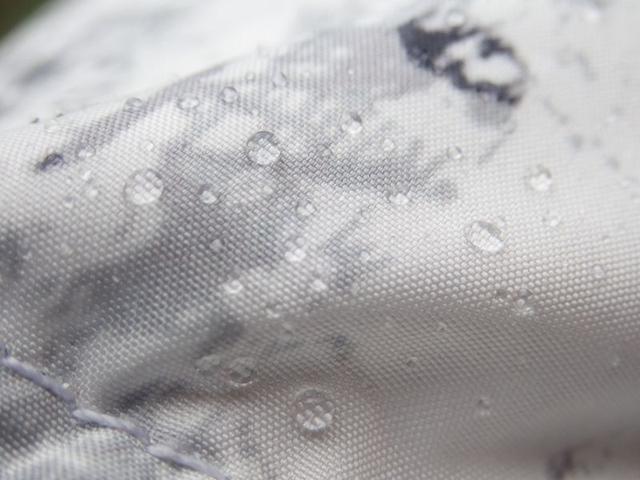 右下:防水效果測試,水珠在表布滾動,不會滲進內里