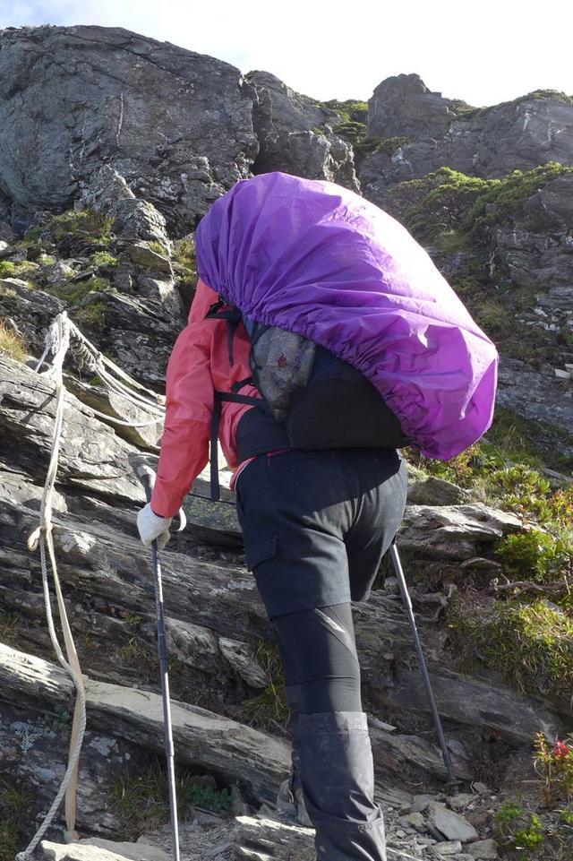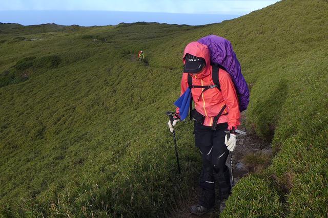 這次雙十連假,前面四天清晨為好天氣,但九、十點左右就開始起霧,傍晚下陣雨,行走間無遇到下雨。后面兩天是下小雨的天氣,行走間都穿著FuseForm防水外套及雨褲。