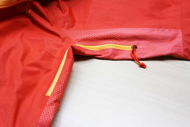 腋下拉鏈設計,可通風。也可看到腋下使用的布料與周圍的不同,是使用較透氣的布料。