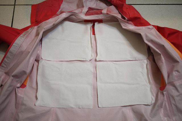 1. 將外套內鋪上平版衛生紙,四處各兩張。