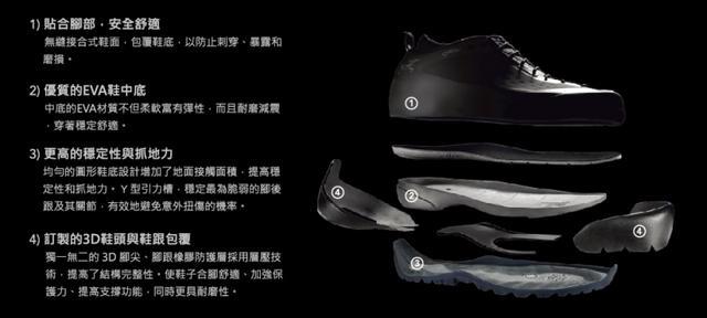 始祖鳥的鞋底由多種物件組成,每一個點都有他的作用
