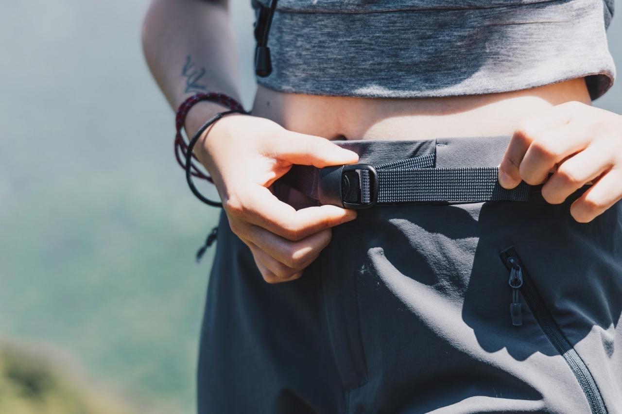 褲頭從照片中很明顯看到是平整的,這大大增加了舒適度,褲頭調整式腰帶的優點有兩個,幾年后腰圍的改變還是能穿得下,以及下山后吃完大餐都可以調整松一點,不會緊到不舒服。