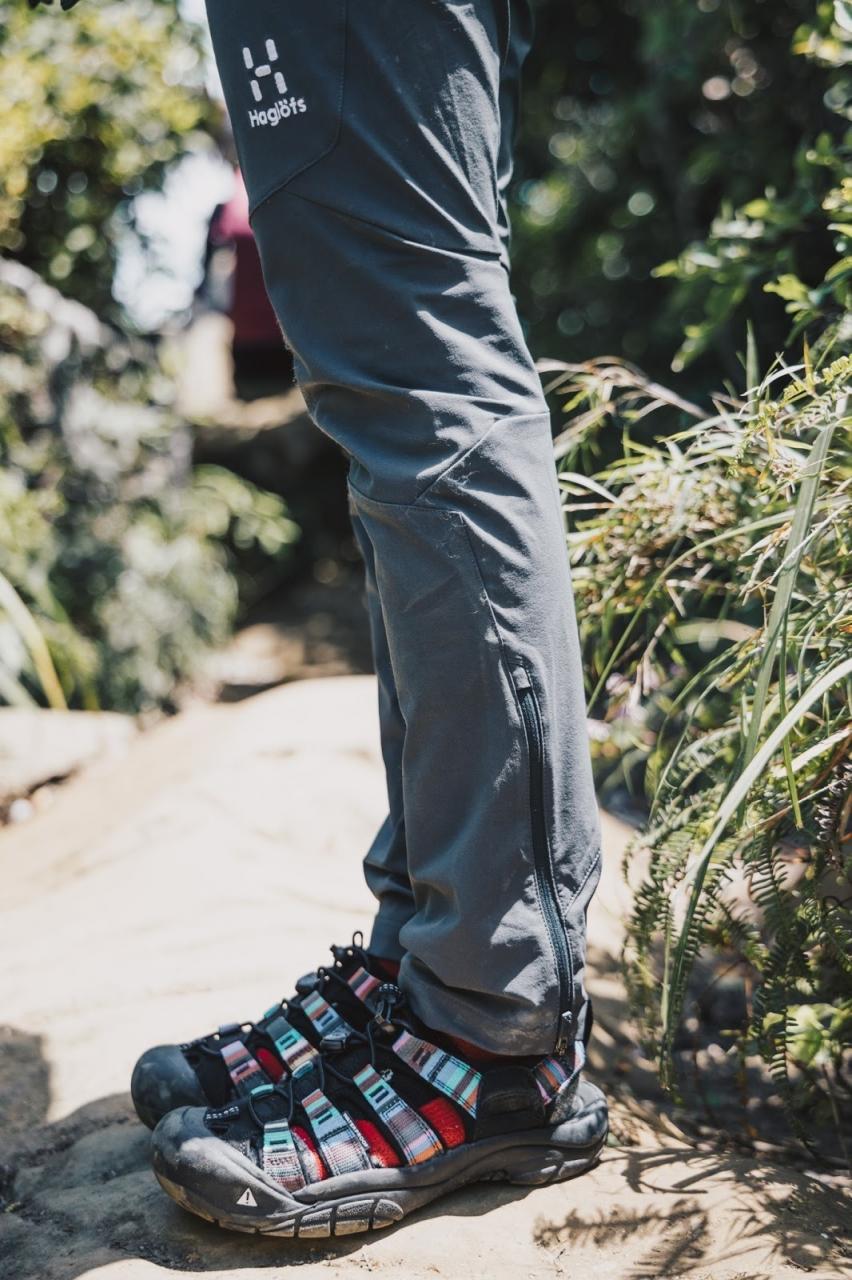 而我最喜歡Haglofs(火柴棍) Lizard 的設計就是兩側褲腿的拉鏈! 我印象幾乎沒看過登山褲這樣的設計。 行進上來說其實感覺不到拉鏈的存在,熱的時候可以方便拉開透氣、卷起。 最方便的是若你的山徑步道碰巧接上溪流,直接拉開往上卷就可以赤腳過膝了,這是炎熱夏天透涼的好方法呀~