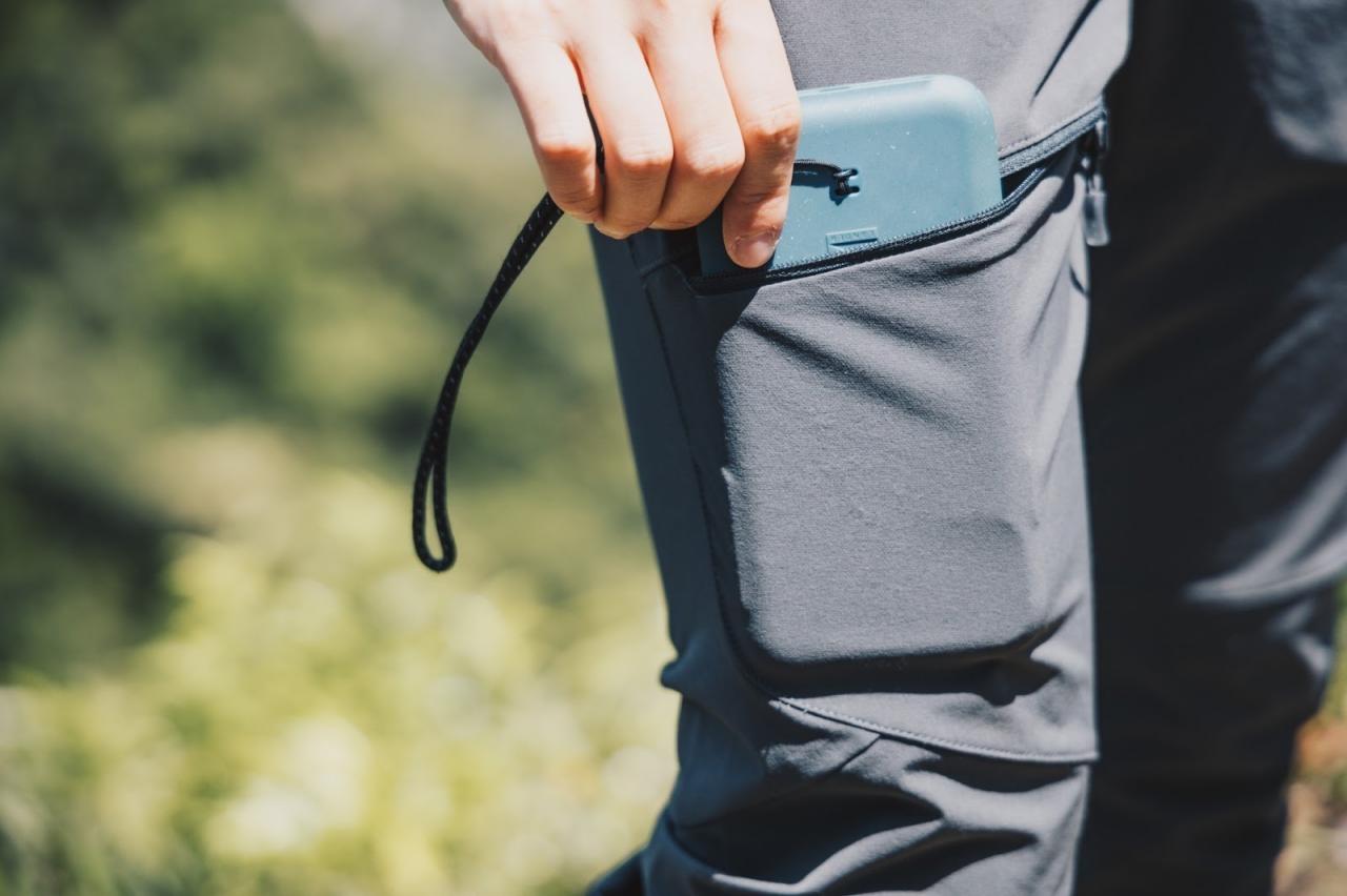 除了兩側口袋 ; 還有設計大腿的橫向口袋,它的深度相對比較淺,適合放紙本小地圖、衛生紙、糖果等小零食。