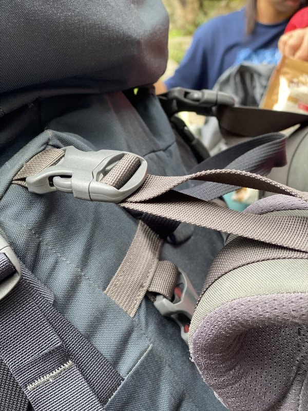 頂袋也能與背板(YOKE)結合,當成登頂包使?,不需要另外攜帶登頂包;不過組裝?式稍嫌繁瑣,使用完畢后,要把整個背板裝回去,需要再重新調整背?。背板上有刻度可以讓每一次的背長調整更快速,還是需要多練習才可以比較熟練;而我愿意帶一個登頂包上山,因此這個功能我比較使用不到。